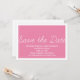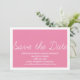 Anúncio de Salvar a Data Capricho em rosa e branco com um design de tipografia simples e divertido. Este convite de salvar a data da moda é fácil de personalizar com os detalhes do seu casamento. Para mais opções de personalização, clique no botão Personalize.