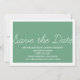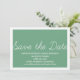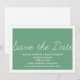 Anúncio Caprichoso de Salvar a Data em verde e branco com um design de tipografia simples e divertido. Este convite moderno para salvar a data é fácil de personalizar com os detalhes do seu casamento. Para mais opções de personalização, clique no botão Personalizar.