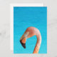 Fotografia da face de um flamingo rosa tropical contra uma face azul de fundo, rosa, flamingo, ave, colorido, tropical, fundo, cor, azul, aviário