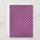 Um grande caranguejo visto de cima tem suas pinças voltadas uma para a outra e está apoiado em uma moldura geométrica dourada falsa cercada por um belo fundo magenta texturizado com aspecto de veludo falso com moldes brancos para sua palavra personalizada. A parte de trás é da mesma cor que a frente e tem um lindo padrão de vieira branco que se assemelha a escamas de peixe. Esta sobreposição pode ser excluída se você preferir um fundo simples. Ideal para temas náuticos, marinhos, submarinos, de praia e do mar para aniversários, casamentos, aniversários de casamento, aniversários e eventos corporativos.