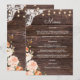 Cardápio de recepção de casamento floral bege e pêssego rústico. Celebre seu casamento na recepção com estilo e charme com este cardápio floral rústico de madeira branca. Personalize com as opções do seu prato principal.