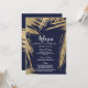 Convite Cardápio de Casamento Azul Naval com Pinceladas Mo