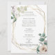 MENU DE NOIVADO | Flores cor-de-rosa e creme de aquarela - uma moldura geométrica dourada multifacetada em estilo terrário adornada com folhagens botânicas e arranjos florais. O verso é uma cor complementar coordenada. Personalize o texto, o estilo da fonte, a cor e o tamanho. Obra de arte original criada para a BarefootBride™ por © WhimsicalArtwork™ - Esta é parte de um Conjunto Completo de Papelaria de Noivado com papelaria de casamento, chá de bebê e outros eventos correspondentes.