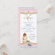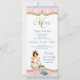 Cardápio de festa de aniversário vintage com menina vitoriana em um lindo damasco rosa e fundo azul. Este lindo cardápio de chá rosa, azul e dourado é facilmente personalizado para o seu evento, basta adicionar seus detalhes no estilo de fonte e cor de sua escolha. Este é um design impresso sem brilho real.