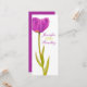 Cardápio de jantar de recepção de casamento de tulipa roxa pintada de primavera única de dois lados. Ideal para suas mesas de casamento com tulipas roxas ou flores de primavera Desenho e pintura em aquarela de tulipa de arte fina por Sarah Trett.