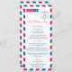 Design de Aviação com listras vermelhas e azuis para o cardápio do seu casamento de destino. Se precisar de alterações no design ou layout para melhor atender às suas necessidades, envie um e-mail para paula@labellarue.com ANTES DE PERSONALIZAR OU FINALIZAR SEU PEDIDO para que um novo modelo seja criado para você.