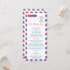 Design de correio aéreo listrado em vermelho e azul para o cardápio do seu casamento de destino. Se precisar de alguma alteração no design ou layout para funcionar melhor para você, envie um e-mail para paula@labellarue.com ANTES DE PERSONALIZAR OU FAZER SEU PEDIDO para que um novo modelo possa ser criado para você.
