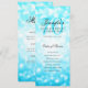 Design elegante do "Programa da Festa de Aniversário" com Bokeh Turquesa e texto personalizado.