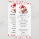 Cardápio e programa do chá de bebê do Dia dos Namorados com doce ursinho em nuvens com balões em forma de coração e fundo de coração. Basta adicionar os detalhes do seu evento na frente e no verso deste adorável cardápio e programa do chá de bebê do doce coração.