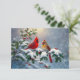 Um par de cardeais vermelhos nortes perch em um galho sagrado coberto de frutas vermelhas e neve.
