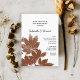 Convide os convidados para celebrar a noiva e o noivo recém-casados na manhã após a cerimônia de casamento no outono de setembro, outubro ou novembro com o convite para o Café da Manhã Pós-Casamento com Carimbo de Folha de Outono Marrom. Este convite personalizado elegante para o Café da Manhã ou Almoço Pós-Casamento na floresta apresenta uma fotografia da natureza digitalmente aprimorada de folhas marrons de bordo coreano adornando os cantos com um fundo branco.