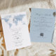 Este convite de casamento apresenta um mapa de cor-d-água azul empoeirado e uma letra elegante de script com uma parte para incluir os seus detalhes adicionais na parte de trás. Edite facilmente a MAIORIA dos textos para atender às suas necessidades e mova o coração/altere o local para realçar o destino do casamento. Este convite é perfeito para sua aventura, viagem ou casamento no exterior.