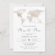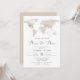 Este chá de panela apresenta um mapa mundial de aquarela bege, trilha de avião cardíaco e letra elegante de script. Este convite é perfeito para o seu viagem ou aventura chá de panela temático. Edite com facilidade o texto *maioria* para atender às necessidades do seu evento.