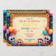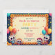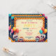 Digam! para *Carnaval de Calavera*, o convite da festa Día de los Muertos que tem mais talento que um esqueleto em uma vitrine mariachi. Com crânios de açúcar, marigold garlands, e o caos dos balões, este cartão é uma fiesta soprada em cheio em forma de papel. A frente derramar todos os detalhes da festa — data, hora, local e regras de fantasia — enquanto a parte de trás é sua para personalizar com informações de RSVP, notas visuais ou um aviso sobre ancestrais amantes do doce. É a maneira perfeita de convocar sua equipe para uma noite de música, memória e comemoração maliciosa. Traga sua própria dança (e talvez um cupcake).