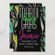 Convite Carnaval Desenhado à Mão Botânico Rosa Verde Preto