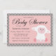 Um design de convite de chá de fraldas doce com borregos e bolinhas cor-de-rosa bonitos sobre um fundo de cinza. Personalize com seus detalhes de evento editando as informações de exemplo no modelo de design. Você pode alterar fontes e tamanhos de fonte e mover o texto e os gráficos no convite para atender às suas necessidades.