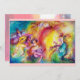 Pintura abstrata colorida e caprichosa em aquarela com figuras dançantes,músicos,trajes de carnaval vibrantes,máscaras em tons rosa,fúcsia,verde,vermelho,azul,amarelo ,inspirada na Comédia da Arte (Commedia dell'arte),máscaras italianas e Carnaval de Veneza .