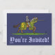Um cavaleiro do século 15 com blindagem em placas baixa sua lança e empurra seu destemer (cavalo de guerra) para uma carga nesta ilustração original de Richard H. Fay.