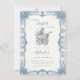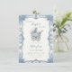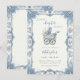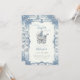 Celebre uma nova e linda chegada com este elegante convite de chá de bebê inspirado em Chinoiserie. Com uma ilustração clássica vintage de carruagem de bebê e uma borda ornamentada em Toile de Jouy francesa em azul poeirento, este design é perfeito para um chá sofisticado com tema "Novo Capítulo Começa" ou "Coquette".