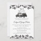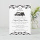 Convite de aniversário de casamento doce com carros antigos e damasco decorativo com emblema de nome decorativo no verso. Estilo clássico e formal de texto e minha própria arte desenhada à mão para um conjunto de convites de 50º aniversário único e lindo.