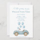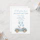 Prepare-se para celebrar em estilo com este convite de aniversário adorável! Com um charmoso carro azul rodeado por balões azuis macios, esta design é perfeita para o aniversário de um bebê, para a celebração de um bebê, ou para uma primeira festa de aniversário. Com um trabalho de arte elegante, mas brincalhão, este convite dá o tom para um dia doce e memorável. Personalize facilmente com o nome, a idade, a data da festa e a localização do seu filho. Uma escolha perfeita para os pais que procuram um tema de festa bonito e coeso com uma reviravolta pastel moderna!