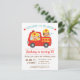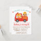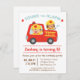 Convite Carro de bombeiros vermelho, cão bonito e festa de