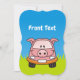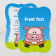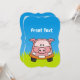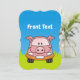 Cartoon de porco sorridente sobre grama verde sob céu azul.