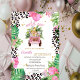 Este primeiro convite de aniversário com a cor d'água de animais selvagens, e folhas de palma.