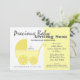 Carruagem amarela do bebê, "bebê precioso chegando em breve", convite para o Chá de fraldas. Altere o texto conforme necessário.