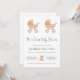 Celebrar a futura mãe das gêmeas meninas com este mínimo de chá de fraldas moderno convite com um retrô que apresenta aquarelas de duas carruagems bebê em cor rosa pastel com sotaques dourados. "É um Chá de fraldas Gêmeo" está escrito por baixo em um roteiro contemporâneo. Uma pequena coloração d'água de um ursinho cor-de-rosa pastel e dourado na parte inferior do convite separa blocos de texto da localização da parte e detalhes de RSVP.