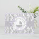 cinzas selvagens e quentes e zebra branca com sotaques de lavanda e carruagem de bebê bolinhas e cinza branca com arco de aparência 3D e cartão de convite de fita para um chá de fraldas feminino.