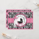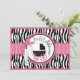 Impressão em zebra branca e preta selvagem e doce, com sotaques cor-de-rosa quente e carrinho de bebê bolinhas com arco 3D e fita para o convite de chá de fraldas dos gêmeos.