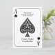 Inicie uma noite de pôquer bem com este convite criado como um cartão de ás de espadas. O verso tem uma borda semelhante ao verso de uma carta de baralho padrão. Use para noite de pôquer, uma festa de noite de cassino, festa de aniversário, festa de despedida de solteiro, ou evento de arrecadação de fundos. Disponível com produtos correspondentes.