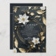 Modelo de Carta de Boas-Vindas e Convite de Casamento Elegante Vintage Moderno - Coroa Floral Preta, Branca e Dourada Elegante.
