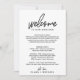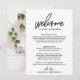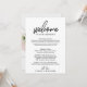 Essas cartas e cartões de mapa de boas-vindas com caligrafia caprichosa são perfeitos para uma bolsa de boas-vindas de casamento em um destino. O design apresenta uma tipografia elegante, mas rústica, para um visual minimalista simples. A frente do cartão apresenta uma carta de boas-vindas e itinerário. Inclua um mapa do seu resort com locais importantes anotados no verso do cartão.