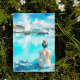 Este postal apresenta um retrato aquoso de uma mulher loura olhando para a laguna azul na Islândia.