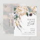Nós projetamos este cartão-postal de "Salve a Data" com foto e escrita floral branca para completar o seu casamento rústico escuro tropical. Com sua folhagem em aquarela boêmia e suas flores modernas de inverno boho, incluindo protea, dália e lótus seco, o design certamente destacará seu tema verde e branco, sombrio e minimalista. Altere o texto e adicione uma foto para torná-lo seu. Além disso, certifique-se de ver o resto da coleção para encontrar itens coordenados que unirão todo o seu casamento! https://www.zazzle.com/collections/white_floral_collection-119896729923706651