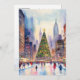 Este cartão postal apresenta um retrato em estilo aquoso de Nova Iorque durante o Natal.