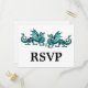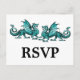 Perfeito para um sofisticado jogo de mesa de fantasia O casamento temático é este nerd e único cartão postal de RSVP de Casamento de Dragões Elegantes com um par vibrante e colorido de dragões turquesa. Fácil de personalizar, basta adicionar os detalhes do casamento nos campos de texto fornecidos. Clique em "Personalizar" para encontrar mais opções de personalização.