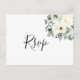 Este elegante cartão postal de RSVP botânico apresenta um design floral de marfim de aquarela com folhagem verde-clara. Personalize com seus próprios detalhes.
