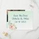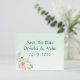 Cartão postal de salvar a data floral elegante menta, envie para seus amigos para salvar sua grande data e deseja boa sorte, você pode colocar uma boa foto para você como casal, mostrando a todos como você está feliz, o design é simples e elegante e fácil de usar