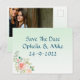 Cartão postal de salvar a data floral menta elegante, envie para seus amigos para salvar sua grande data e deseja boa sorte, você pode colocar uma boa foto para você como casal, mostrando a todos como você é feliz, o design é simples e elegante e fácil de usar