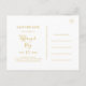 Este simples e elegante cartão postal de ouro "save the date" é perfeito para o seu casamento moderno minimalista branco e dourado. O design apresenta uma fonte dourada contemporânea minimalista acompanhada por caligrafia formal. Deixe como está ou escolha personalizá-lo com sua própria arte ou fotos!