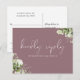 Um cartão RSVP de pedido de música elegante, com vegetação floral e tipografia quic em fundo mauve. O inverso apresenta os seus detalhes e uma solicitação divertida de música de convidado. Projetado por Thisnotme©
