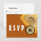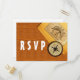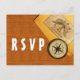 Resposta de Casamento de Aventura Cartão-postal com uma bússola antiga, uma placa de informação do esqueleto de dinossauro de stegossauro num pedaço de papel e uma madeira parece um fundo de arte digital. Este cartão postal RSVP de casamento legal é perfeito para uma aventura arqueológica ou um casamento temático de museu. Fácil de personalizar, simplesmente adicione seus detalhes de casamento. Clique em "Personalizar" para encontrar mais opções de personalização.