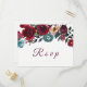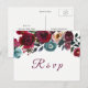 Convite Cartão postal RSVP de Casamento Floral de Red Wine