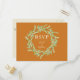 Uma camada verde de cor aquosa elegante na frente com um fundo laranja ocre e seus detalhes de placa RSVP sobre a cor creme na parte traseira deste cartão postal. Personalize com sua resposta por data, aceite ou recuse e com possíveis opções de refeição. CORRESPONDENDO a itens na nossa loja.