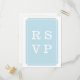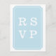 Cartão-postal de resposta de casamento simples e elegante com um design de emblema azul elegante. Este design clássico e na moda é fácil de personalizar com seus detalhes de casamento. Para obter mais opções de personalização, clique em Personalizar.