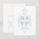 Convite Cartão postal RSVP de Casamento tema damasco Azul