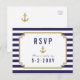 Personalize este Cartão-postal de resposta RSVP de Casamento Náutico moderno na moda. Design azul e branco listrado, definido como um modelo para uma fácil personalização. Convocação de casamento, Cartão RSVP com opção de refeição, Cartão de Programa, Cartões de Direção, Chá de panela, Convite de Janto de ensaio e Cartões de marca de agradecimento e Adesivos de favoritos podem ser encontrados em uma Coleção de Casamentos Náuticos de Na moda.